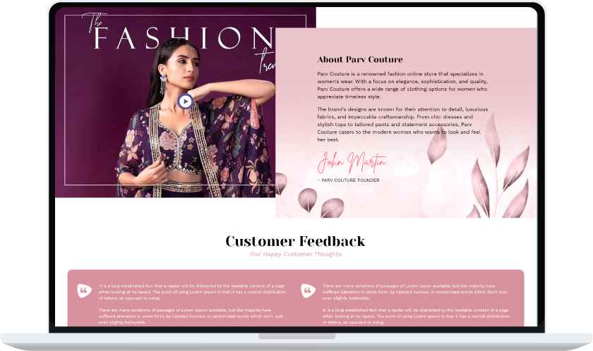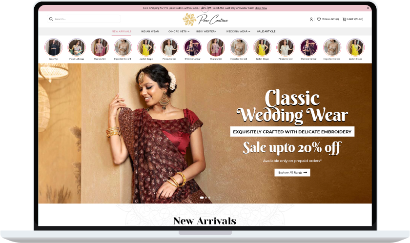 We developed a fully customized Shopify website for Parv Couture, featuring sleek design, user-friendly navigation, and optimized functionality. The site enhances the customer experience while supporting seamless online shopping and business growth.